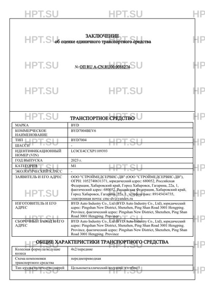 | Колея | 1530/1530 Электродвигатель электромобиля (марка, тип) BYD, TZ180XSF переменного тока, синхронный, трехфазный, с постоянными магнитами Рабочее напряжение, В 333 Максимальная 30-минутная мощность, кВт 70 Устройство накопления энергии литий-ионная аккумуляторная батарея |