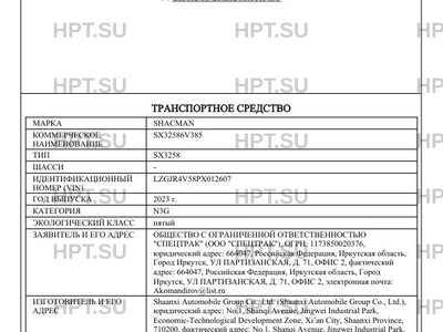 | Предприятие-изготовитель | Shaanxi Automobile Group Co., Ltd. (Shaanxi Automobile Group Co., Ltd.), юридический адрес: No.1, Shanqi Avenue, Jingwei Industrial Park, Economic-Technological Development Zone, Xian City, Shaanxi Province, 710200, фактический адрес: No.1, Shanqi Avenue, Jingwei Industrial Park, Economic-Technological Development Zone, Xian City, Shaanxi Province, 710200 |
