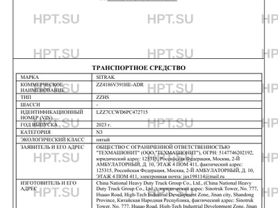 | Марка ТС | SITRAK |