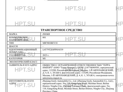 | Колея | 1713/1726 Электродвигатель электромобиля (марка, тип) ZEEKR, TZ220XSA01 (передний), синхронный электродвигатель с постоянным магнитом, максимальная мощность - 200 кВт Рабочее напряжение, В 407 Максимальная 30-минутная мощность, кВт 70 Электродвигатель электромобиля (марка, тип) ZEEKR, TZ220XSA01 (задний), синхронный электродвигатель с постоянным магнитом, максимальная мощность - 200 кВт Рабочее напряжение, В 407 Максимальная 30-минутная мощность, кВт 70 Устройство накопления энергии Батарея |