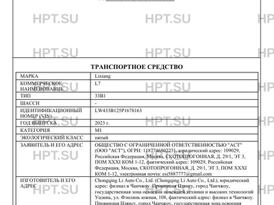 | Марка ТС | Lixiang |