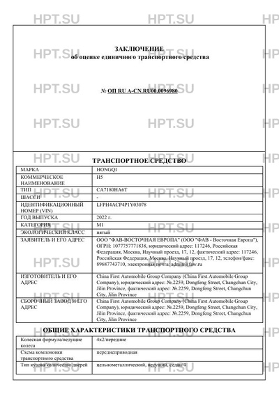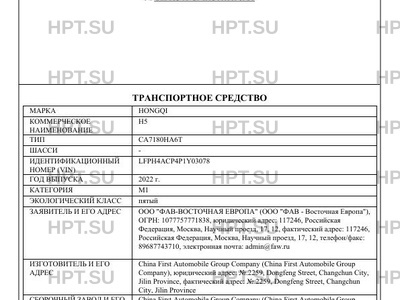 | Марка ТС | HONGQI |