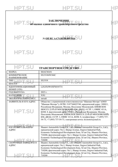| Предприятие-изготовитель | Shaanxi Automobile Group Co., Ltd. (Shaanxi Automobile Group Co., Ltd.), юридический адрес: No.1, Shanqi Avenue, Jingwei Industrial Park, Economic-Technological Development Zone, Xian City, Shaanxi Province, 710200, фактический адрес: No.1, Shanqi Avenue, Jingwei Industrial Park, Economic-Technological Development Zone, Xian City, Shaanxi Province, 710200 |