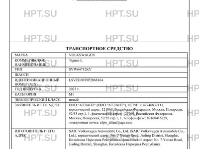 | Коммерческое наименование | Tiguan L |