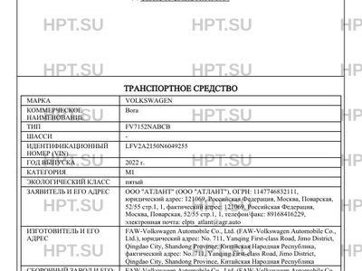 | Марка ТС | VOLKSWAGEN |