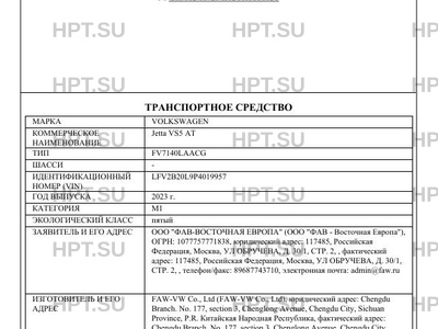 | Коммерческое наименование | Jetta VS5 AT |