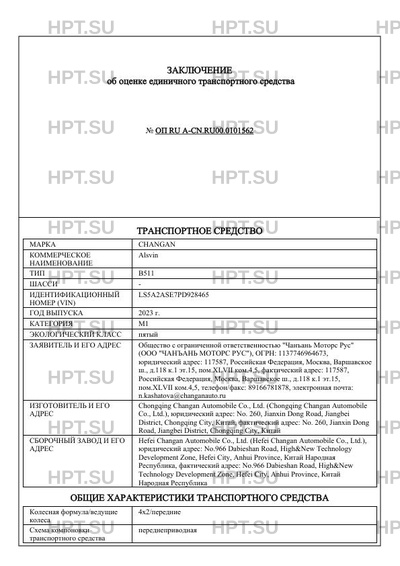 | Марка ТС | CHANGAN |