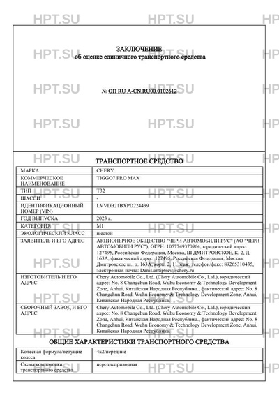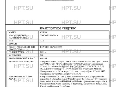 | Предприятие-изготовитель | Chery Automobile Co., Ltd. (Chery Automobile Co., Ltd.), юридический адрес: No. 8 Changchun Road, Wuhu Economy & Technology Development Zone, Anhui, Китайская Народная Республика., фактический адрес: No. 8 Changchun Road, Wuhu Economy & Technology Development Zone, Anhui, Китайская Народная Республика. |
