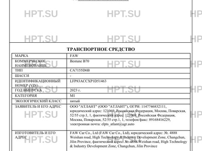 | Марка ТС | FAW |