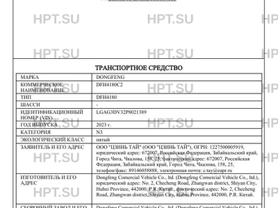| Предприятие-изготовитель | Dongfeng Comercial Vehicle Co., ltd. |