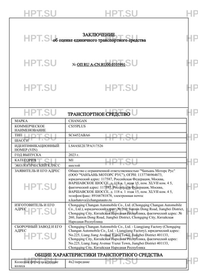 | Марка ТС | CHANGAN |