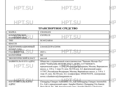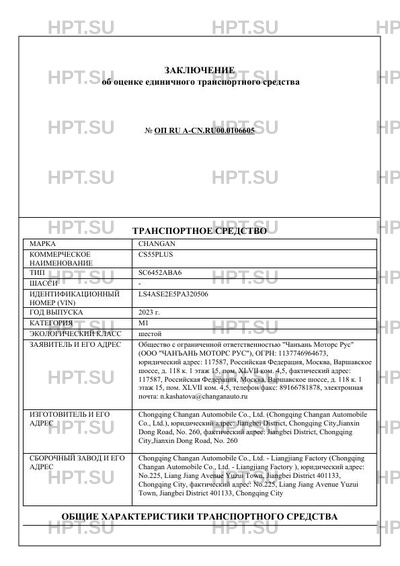 | Марка ТС | CHANGAN |