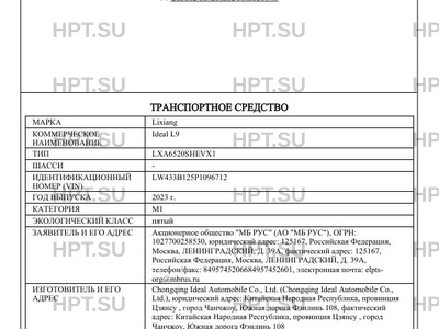 | Марка ТС | Lixiang |