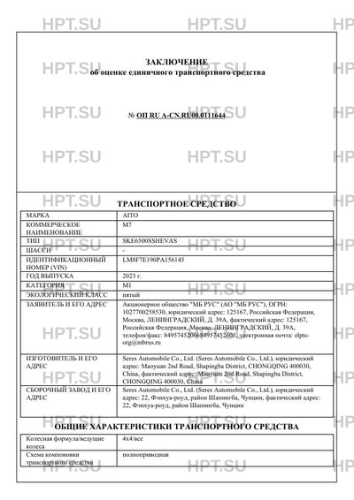 | Предприятие-изготовитель | Seres Automobile Co., Ltd. |