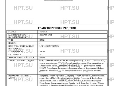 | Марка ТС | VOYAH |