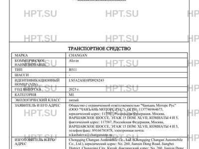 | Предприятие-изготовитель | Chongqing Changan Automobile Co., Ltd. (Chongqing Changan Automobile Co., Ltd.), юридический адрес: No. 260, Jianxin Dong Road, Jiangbei District, Chongqing City, Китай, фактический адрес: No. 260, Jianxin Dong Road, Jiangbei District, Chongqing City, Китай |