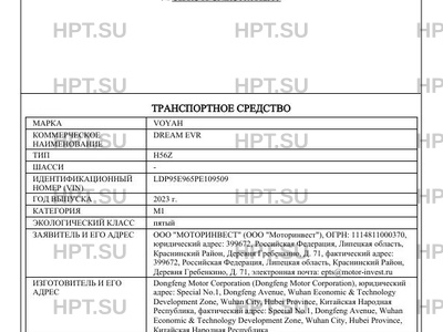 | Марка ТС | VOYAH |