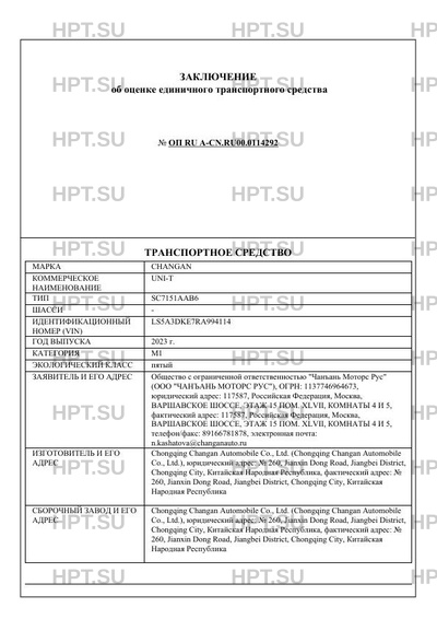 | Марка ТС | CHANGAN |