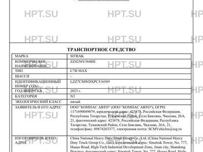 | Марка ТС | SITRAK |