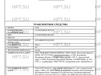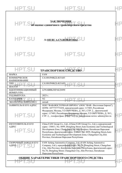 | Марка ТС | FAW |