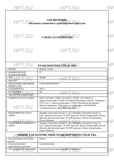 | Марка ТС | RISING AUTO |