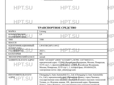 | Марка ТС | Lixiang |