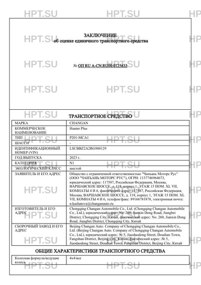 | Предприятие-изготовитель | Chongqing Changan Automobile Co., Ltd. (Chongqing Changan Automobile Co., Ltd.), юридический адрес: No. 260, Jianxin Dong Road, Jiangbei District, Chongqing City, Китай, фактический адрес: No. 260, Jianxin Dong Road, Jiangbei District, Chongqing City, Китай |