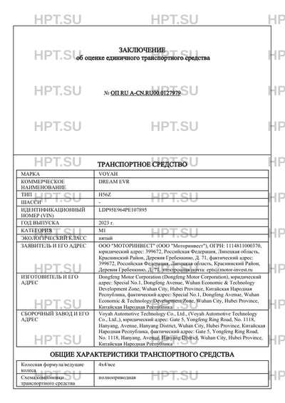 | Марка ТС | VOYAH |
