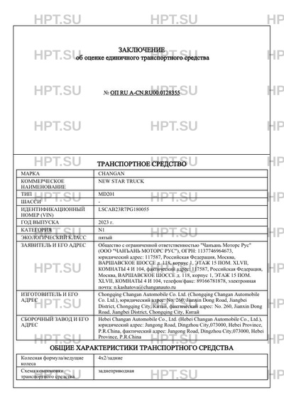 | Марка ТС | CHANGAN |