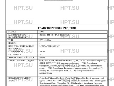 | Марка ТС | FAW |
