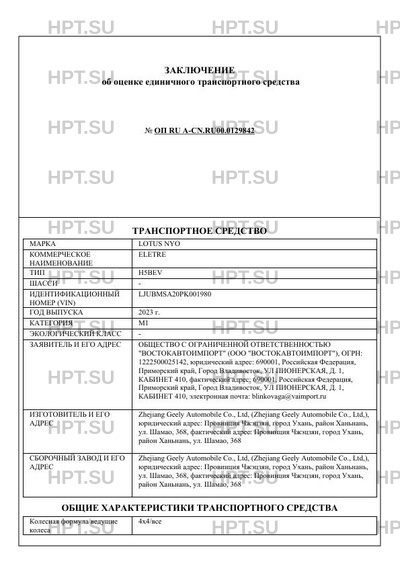 | Колея | 1706/1684 Электродвигатель электромобиля (марка, тип) Lotus, TZ230XS225, синхронный, переменного тока, трехфазный, с постоянными магнитами,, Передний, TZ230XS225 - синхронный, переменного тока, трехфазный, с постоянными магнитами, мощностью – 225 кВт Рабочее напряжение, В 708 Максимальная 30-минутная мощность, кВт 70 Электродвигатель электромобиля (марка, тип) Lotus, TZ264XY000, синхронный, переменного тока, трехфазный, с постоянными магнитами, задний, TZ264XY000 - синхронный, переменного тока, трехфазный, с постоянными магнитами, мощностью – 450 кВт Рабочее напряжение, В 708 Максимальная 30-минутная мощность, кВт 180 Устройство накопления энергии Батарея |