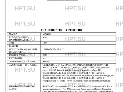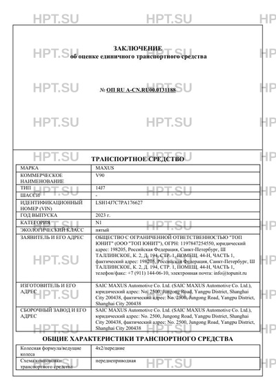 | Предприятие-изготовитель | SAIC MAXUS Automotive Co. Ltd. (SAIC MAXUS Automotive Co. Ltd.), юридический адрес: No. 2500, Jungong Road, Yangpu District, Shanghai City 200438, фактический адрес: No. 2500, Jungong Road, Yangpu District, Shanghai City 200438 |