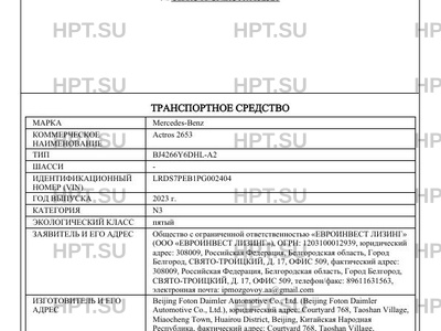 | Категория ТС | N3 |