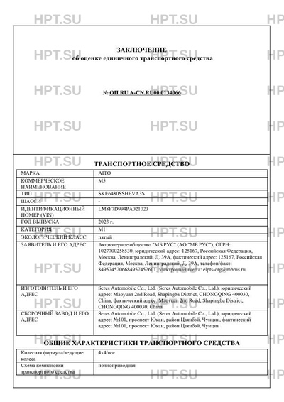 | Предприятие-изготовитель | Seres Automobile Co., Ltd. (Seres Automobile Co., Ltd.), юридический адрес: Maoyuan 2nd Road, Shapingba District, CHONGQING 400030, China, фактический адрес: Maoyuan 2nd Road, Shapingba District, CHONGQING 400030, China |