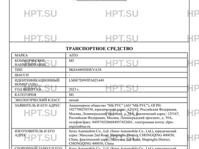 | Предприятие-изготовитель | Seres Automobile Co., Ltd. (Seres Automobile Co., Ltd.), юридический адрес: Maoyuan 2nd Road, Shapingba District, CHONGQING 400030, China, фактический адрес: Maoyuan 2nd Road, Shapingba District, CHONGQING 400030, China |