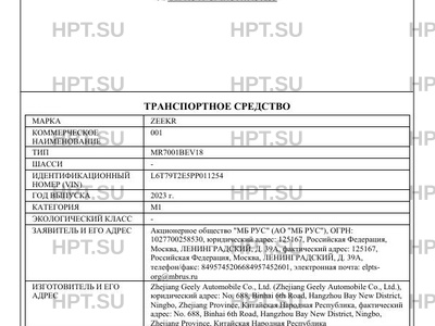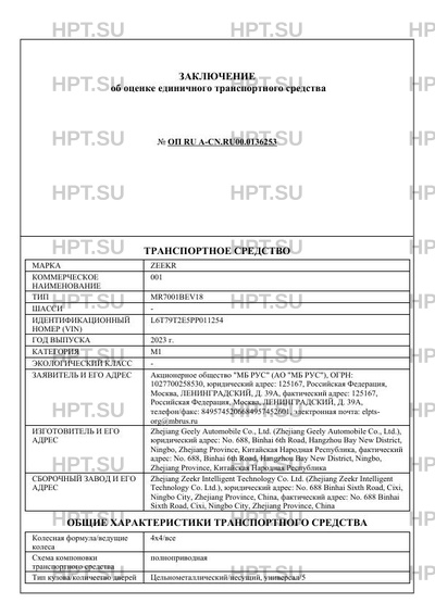 | Марка ТС | ZEEKR |