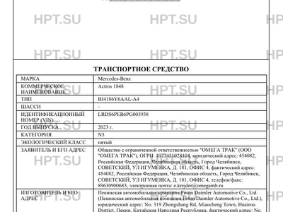 | Предприятие-изготовитель | Пекинская автомобильная компания Foton Daimler Automotive Co., Ltd. (Пекинская автомобильная компания Foton Daimler Automotive Co., Ltd.), юридический адрес: No. 319 Zhongshang Rd, Miaocheng Town, Huairou District, Пекин, Китайская Народная Республика, фактический адрес: No. 319 Zhongshang Rd, Miaocheng Town, Huairou District, Пекин, Китайская Народная Республика |