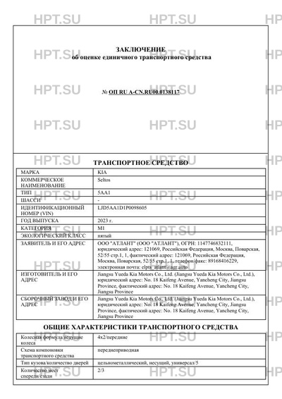| Коммерческое наименование | Seltos |