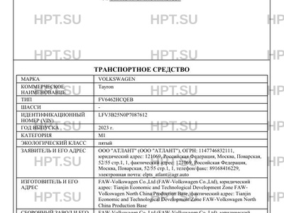 | Марка ТС | VOLKSWAGEN |
