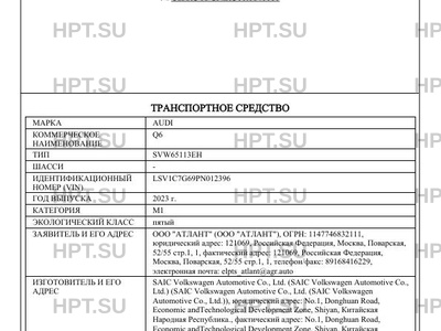 | Предприятие-изготовитель | SAIC Volkswagen Automotive Co., Ltd. (SAIC Volkswagen Automotive Co., Ltd.) (SAIC Volkswagen Automotive Co., Ltd. (SAIC Volkswagen Automotive Co., Ltd.)), юридический адрес: No.1, Donghuan Road, Economic andTechnological Development Zone, Shiyan, Китайская Народная Республика., фактический адрес: No.1, Donghuan Road, Economic andTechnological Development Zone, Shiyan, Китайская Народная Республика. |