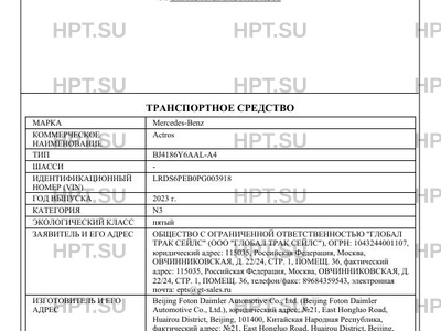 | Предприятие-изготовитель | Beijing Foton Daimler Automotive Co., Ltd. |