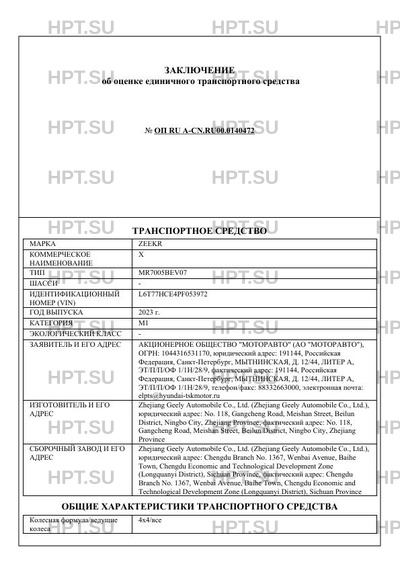 | Марка ТС | ZEEKR |