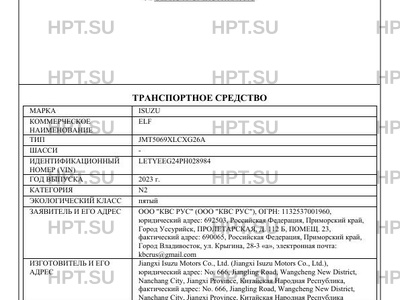 | Предприятие-изготовитель | Jiangxi Isuzu Motors Co., Ltd. (Jiangxi Isuzu Motors Co., Ltd.), юридический адрес: No. 666, Jiangling Road, Wangcheng New District, Nanchang City, Jiangxi Province, Китайская Народная Республика, фактический адрес: No. 666, Jiangling Road, Wangcheng New District, Nanchang City, Jiangxi Province, Китайская Народная Республика |
