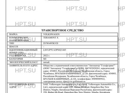 Предприятие-изготовитель SAIC Volkswagen Automobile Co., Ltd.