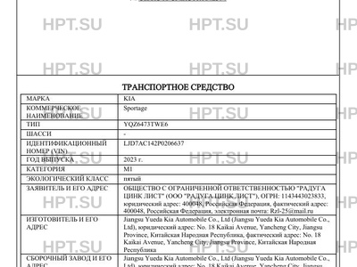 | Коммерческое наименование | Sportage |