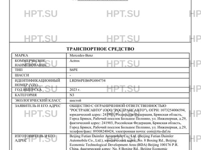 | Предприятие-изготовитель | Beijing Futian Daimler Automobile Co., Ltd. (Beijing Futian Daimler Automobile Co., Ltd.), юридический адрес: No. 8 Boxing Rd., Beijing Economic Technological Development Area (BDA) Beijing 100176 P.R. China, фактический адрес: No. 8 Boxing Rd., Beijing Economic Technological Development Area (BDA) Beijing 100176 P.R.China |