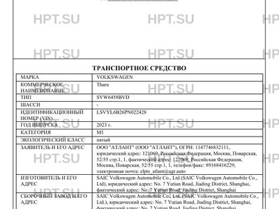 | Предприятие-изготовитель | SAIC Volkswagen Automobile Co., Ltd |