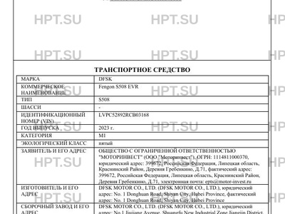 | Коммерческое наименование | Fengon S508 EVR |