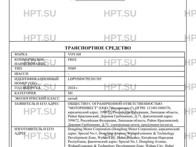 | Марка ТС | VOYAH |