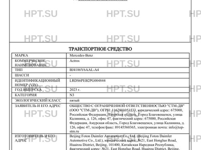 | Предприятие-изготовитель | Beijing Foton Daimler Automotive Co., Ltd. |